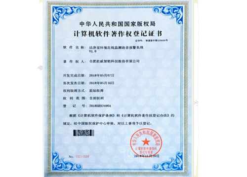 软件著作权证(洁净室环境在线监测语音报警系统V1.0)