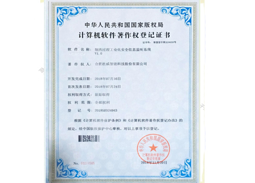 软件著作权证(制药过程工业化安全信息监听系统V1.0)
