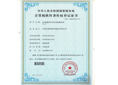 软件著作权证(GSP温湿度实时语音监测系统V1.0)