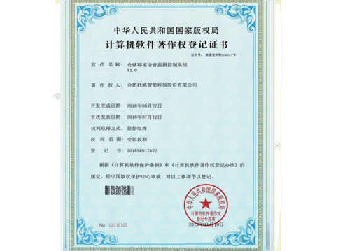 软件著作权证(仓储环境语音监测控制系统V1.0)