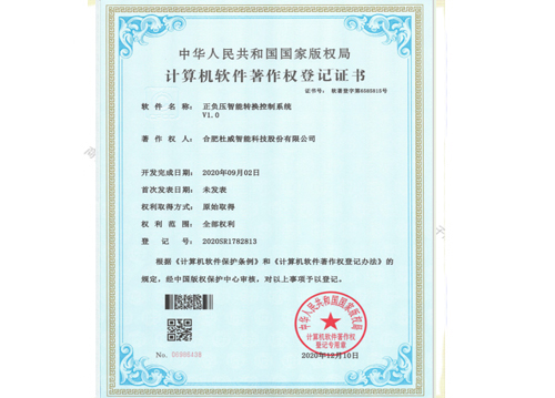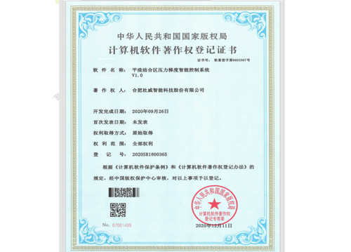 软件著作权证(平疫结合区压力梯度智能控制系统V1.0)