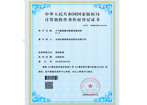 软件著作权证(大气基准微压数据采集系统V1.0)