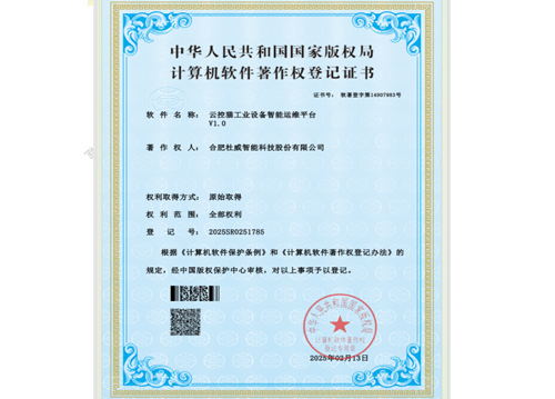软件著作权证(云控猫工业设备智能运维平台V1.0)