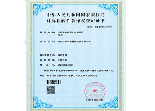 软件著作权证(云控猫智能名片识别系统V1.0)