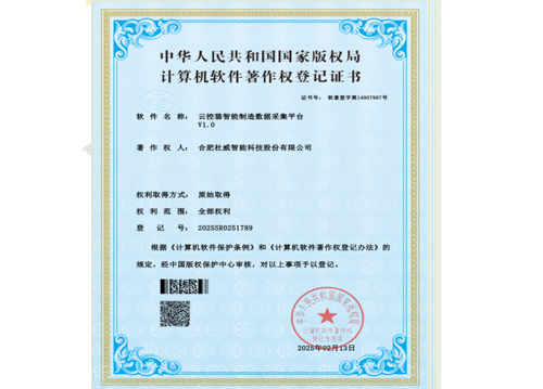 软件著作权证(云控猫智能制造数据采集平台V1.0)