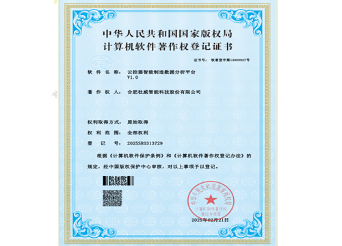 软件著作权证(云控猫智能制造数据分析平台V1.0)